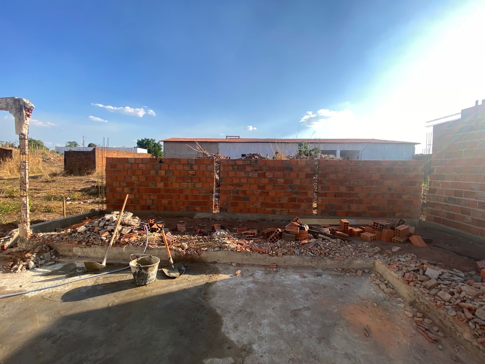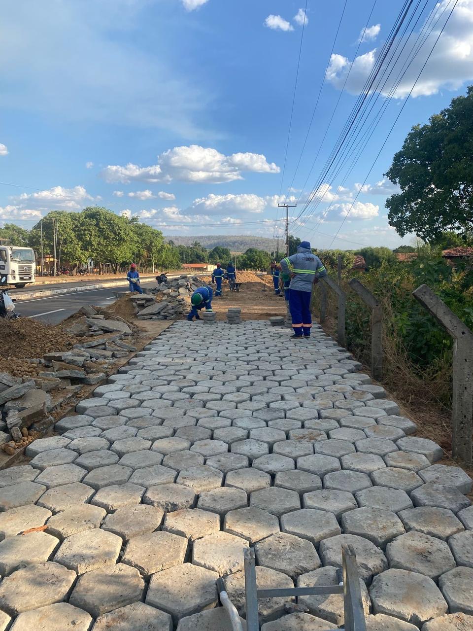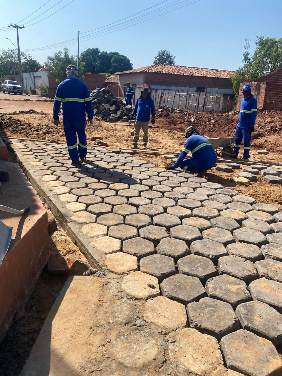 Obra de bloquetes intertravado campo agrícola.